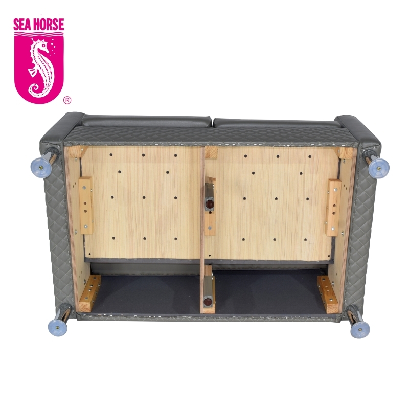 2、選用灰色防火PVC仿皮+棱形簡花工藝,簡約大氣,高腳設計可過掃地機器人;